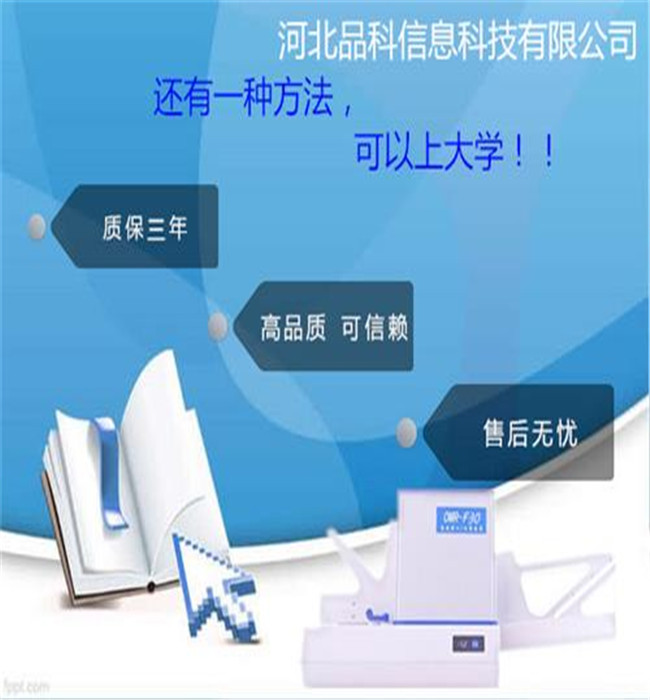 品科信息科技有限公司是一家極富創新的教育科技產品公司。品科為全國用戶提供高考網上閱卷系統、多功能光標閱讀機、外包型閱卷服務以及包括答題卡、智能軟件定制服務。 品科光標閱讀機(閱卷機)的使用范圍:主要應用于國內外考試評卷、考試報名、志愿統計、各行各業的干部測評、考核、選舉、數據采集。現在品科的光標閱讀機產品已經在全國30幾個省市的重點初中、重點高中、重點大學使用開了。