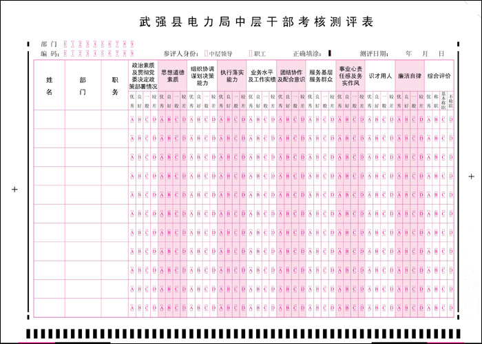 我公司真正符合閱讀機讀卡規范:品科答題卡的式樣,是根據輸入計算機的信息并按照光標閱讀機的設計規范所要求的格式而設計的。